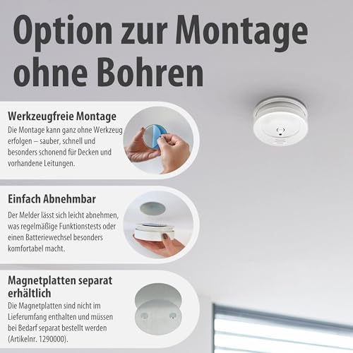 Die Rauchwarnmelder sind im schlichten, weißen Design gehalten, das sich harmonisch in jede Wohnumgebung einfügt. Zudem bietet die Deckenmontage nicht nur die besten Detektionsergebnisse, sondern sorgt auch für eine unauffällige Integration in Ihr Zuhause.