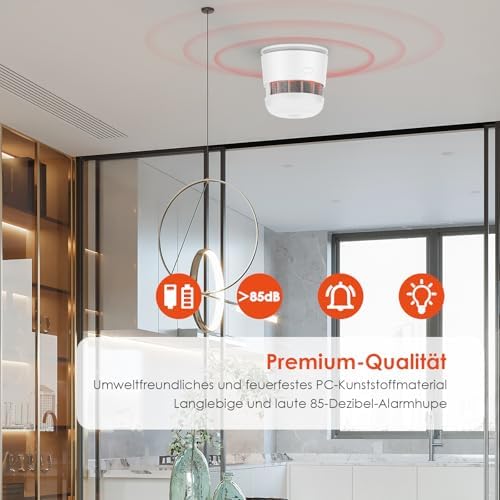 Mit einem Alarmton von über 85 Dezibel können Sie sicher sein, dass der Rauchmelder selbst den tiefsten Schläfer weckt. Die hohe Lautstärke des Alarms stellt sicher, dass Sie und Ihre Familie im Falle eines Brandes rechtzeitig gewarnt werden.