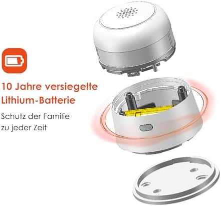 Unser Rauchmelder ist mit einer hochmodernen, nicht entfernbare Lithiumbatterie ausgestattet, die eine beeindruckende Lebensdauer von bis zu zehn Jahren gewährleistet. Dies bedeutet, dass Sie sich keine Gedanken über den Austausch der Batterien machen müssen. Gemäß den technischen EU-Standards erfüllt dieser Alarm höchste Sicherheitsanforderungen und sorgt für langfristigen Schutz in Ihrem Zuhause.
