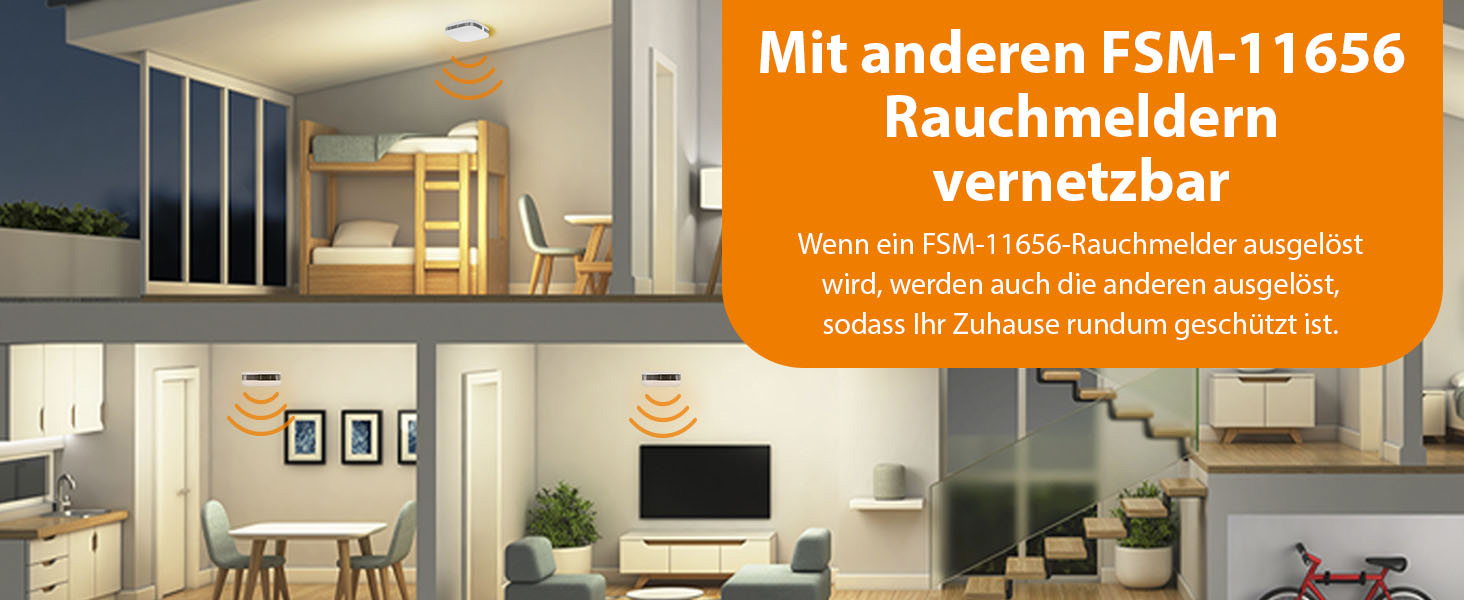 - Interkonnektivität: Mehr Sicherheit durch Vernetzung mehrerer Rauchmelder