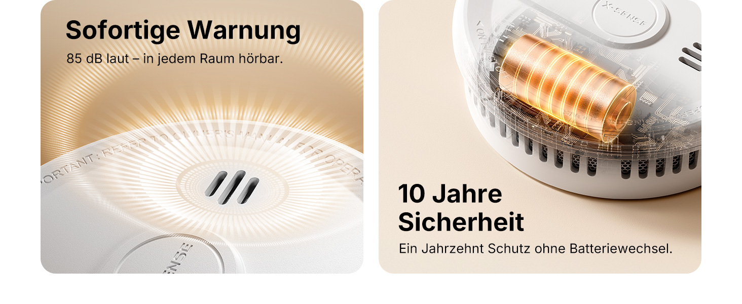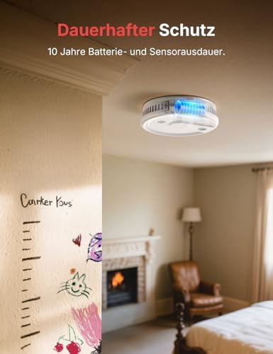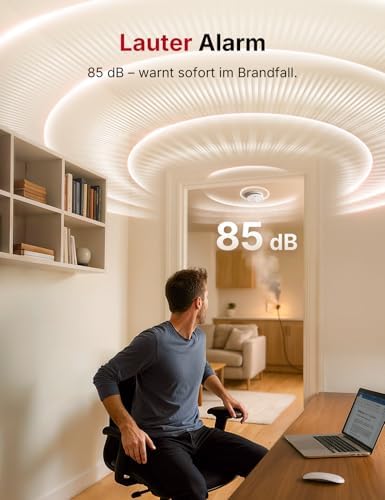 • Elegant und unauffällig: modernes Design, das sicherstellt, dass der Rauchmelder harmonisch in Ihr Zuhause integriert wird.