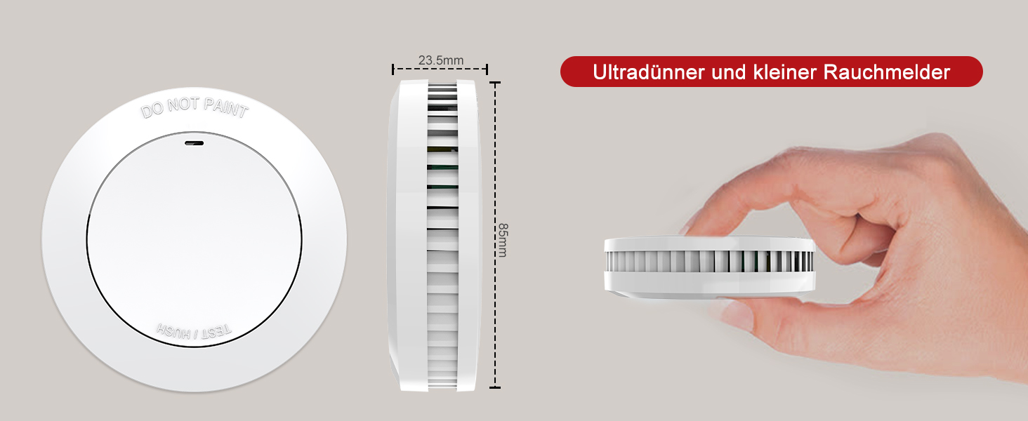 • Kompakte Größe: Mit nur 8.5 x 8.5 x 2.4 cm der kleinste und dünnste Rauchmelder auf dem Markt, unauffällig im Wohnbereich.