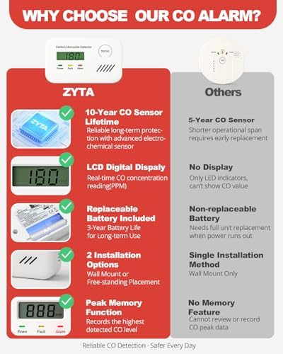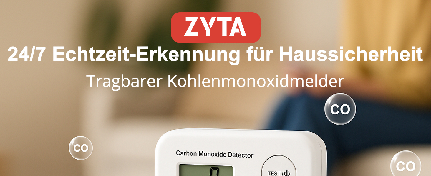 ZYTA Kohlenmonoxid Melder – Tragbarer CO Melder mit LCD, 10-Jahres-Sensor für sicheres ZuhauseZYTA Kohlenmonoxid Melder – Tragbarer CO Melder mit LCD, 10-Jahres-Sensor für sicheres Zuhause
