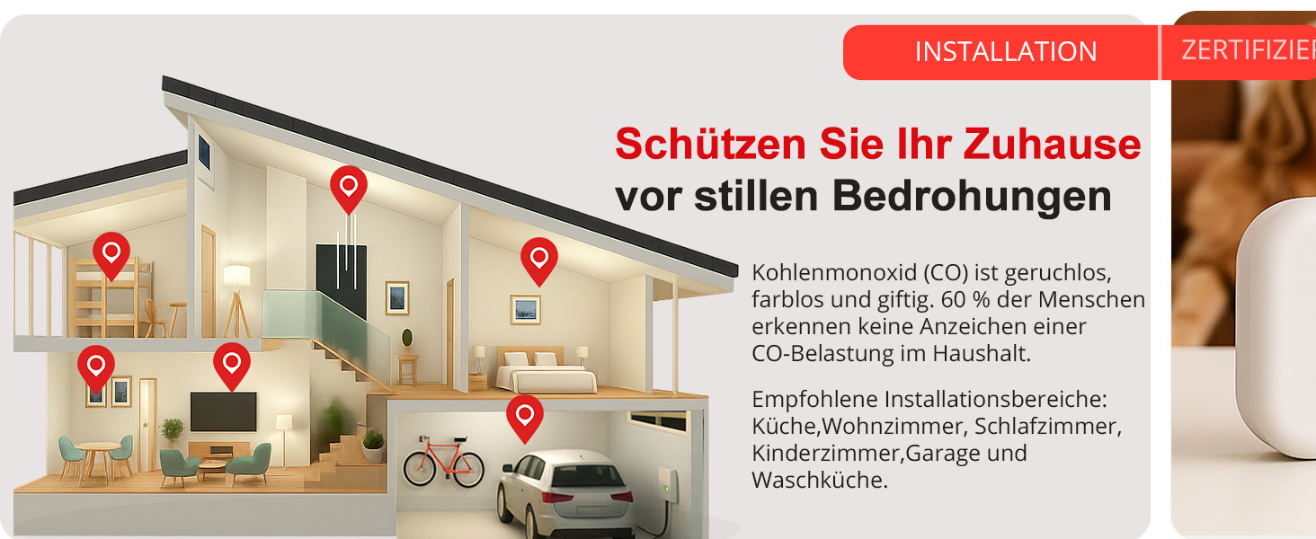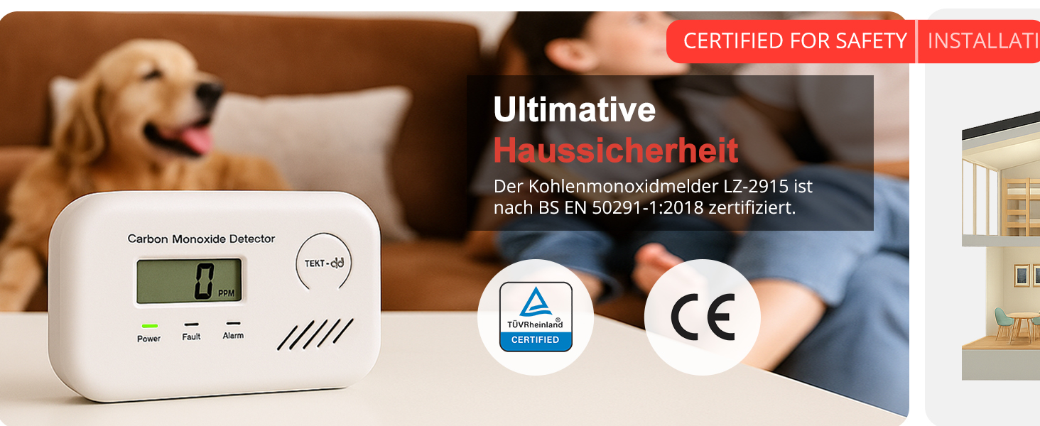 • Zertifizierte Qualität: TÜV Rheinland-zertifiziert und konform mit der Norm EN 50291 für zuverlässige CO-Messung.