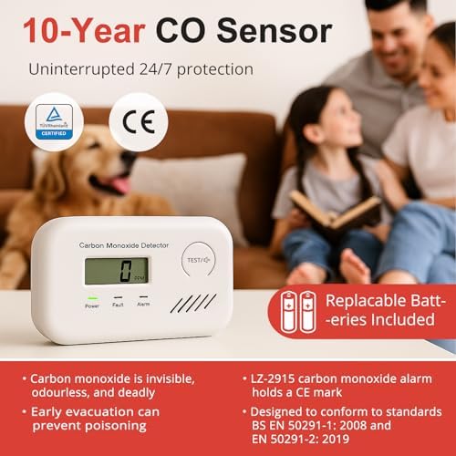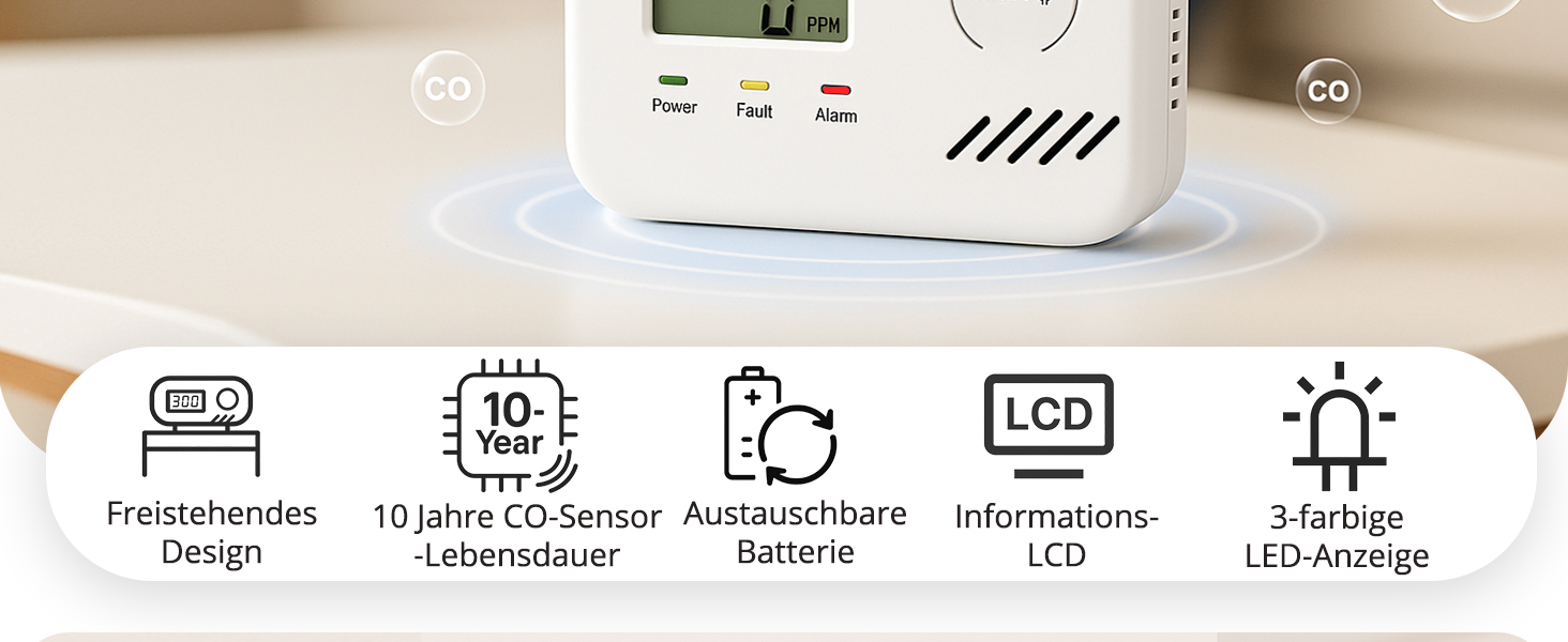 • Langfristige Sicherheit: 10 Jahre Lebensdauer des Kohlenmonoxidmelders ohne häufige Wartung benötigt.