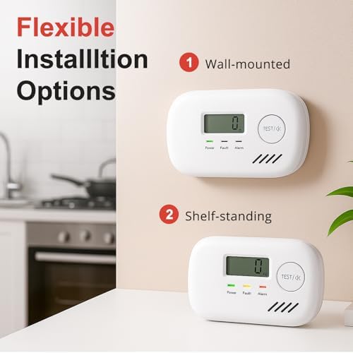 Mit nur 75 × 116 × 32 mm ist dieser Kohlenmonoxidmelder kompakt und leicht zu platzieren. Sein freistehendes Design ermöglicht eine flexible Platzierung auf Möbeln wie Tischen, Regalen oder Nachttischen. Im Lieferumfang enthalten sind Schrauben zur sicheren Wandmontage. Das schlanke Design fügt sich harmonisch in jede Wohnumgebung ein und macht ihn zu einem idealen CO-Warner für Ihr Zuhause.