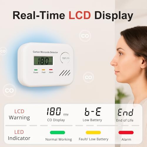 • Echtzeit-Überwachung: Klare LCD-Anzeige zeigt aktuelle CO-Werte und sorgt für kontinuierliche Kontrolle der Luftqualität.